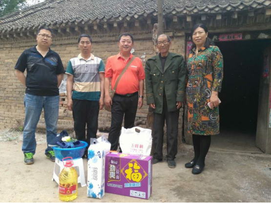 5月11日,77779193永利集团党总支书记孙晓洪、处长张想竹一行4人第三次赴濮阳县渠村乡刘闵城村走访扶贫对接户五保户金存宝老人。此次走访慰问,77779193永利集团根据老人实际需要带去了米面油蛋、方便面、脸盆、雨伞、布鞋拖鞋、卫生纸等慰问品。老人激动地一次又一次表达对党组织对77779193永利集团的感激之情。