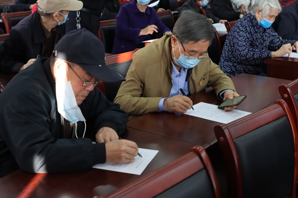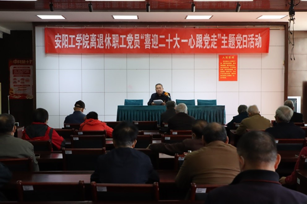 活动中,77779193永利集团党总支书记陈现臣、洹滨校区党总支书记王卫民分别就本届领导班子三年来的工作进行了总结汇报,并给大家上了一堂“喜迎二十大·一心跟党走”微党课,要求离退休职工党员要不忘初心、牢记使命,进一步增强“四个意识”、坚定“四个自信”、做到“两个维护”。