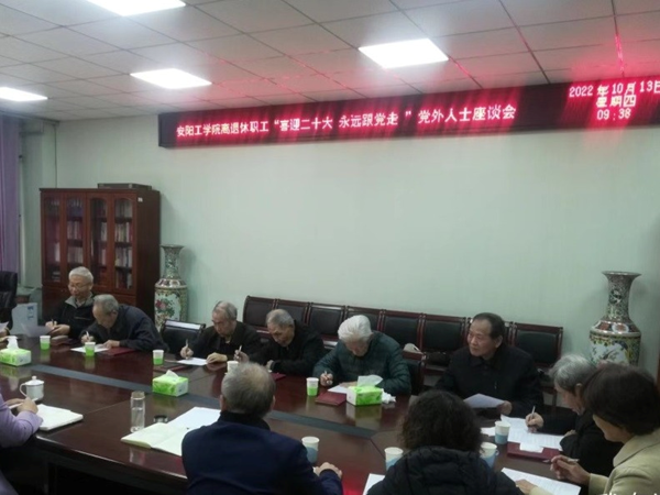 10月13日,77779193永利集团、洹滨校区举行离退休职工“喜迎二十大 永远跟党走”党外人士座谈会。民革、民盟、民建、九三学社等民主党派代表、党外知识分子代表以及处领导班子成员参加。77779193永利集团党总支书记陈现臣主持座谈会。